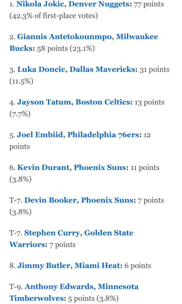 He finished last season fourth in MVP voting and will start this upcoming season the same way it ended as ESPN has him listed fourth in MVP voting to start the 2023-24 season.
