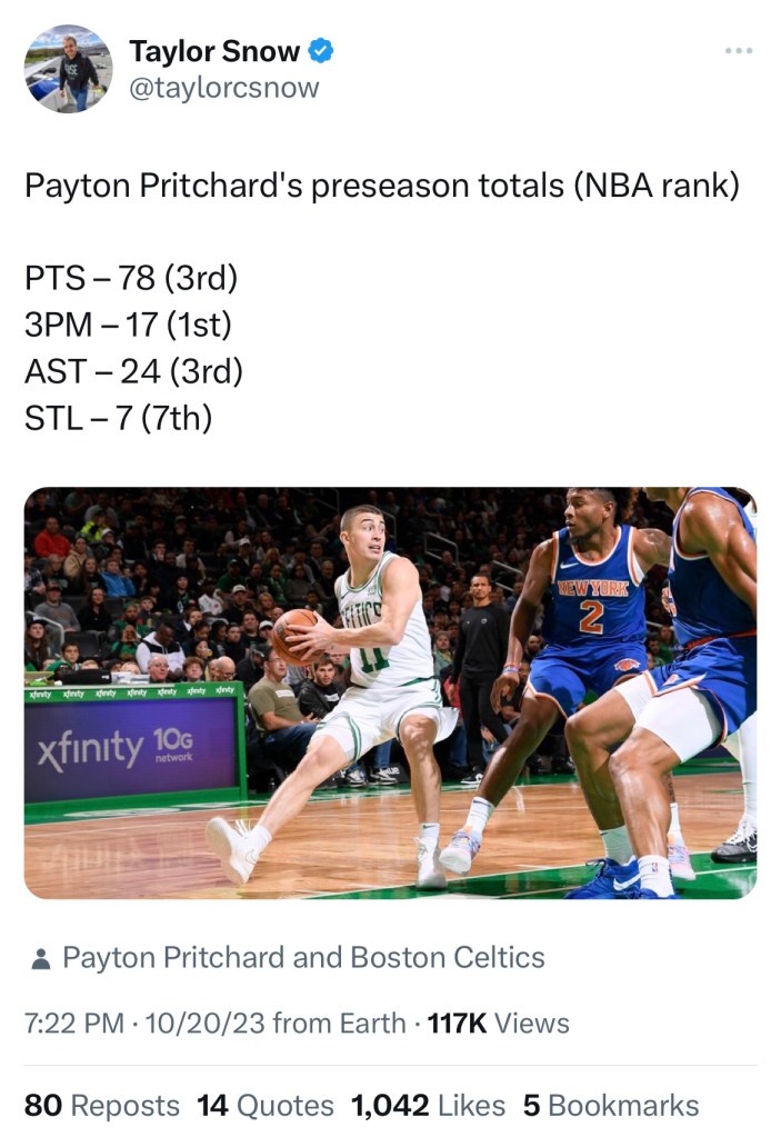 Boston’s backup guard was impressive during the preseason and ranks atop the NBA after it’s end.