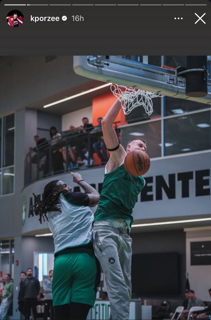 When Porzingis returned to Boston, he was in the background doing his own work as he was still uncleared to practice with the team or do any physical work on the court.
