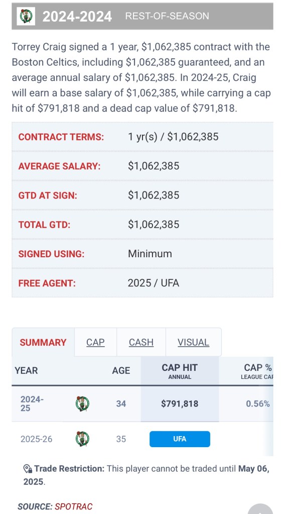 Here’s a look at what Craig’s contract details, via Spotrac.